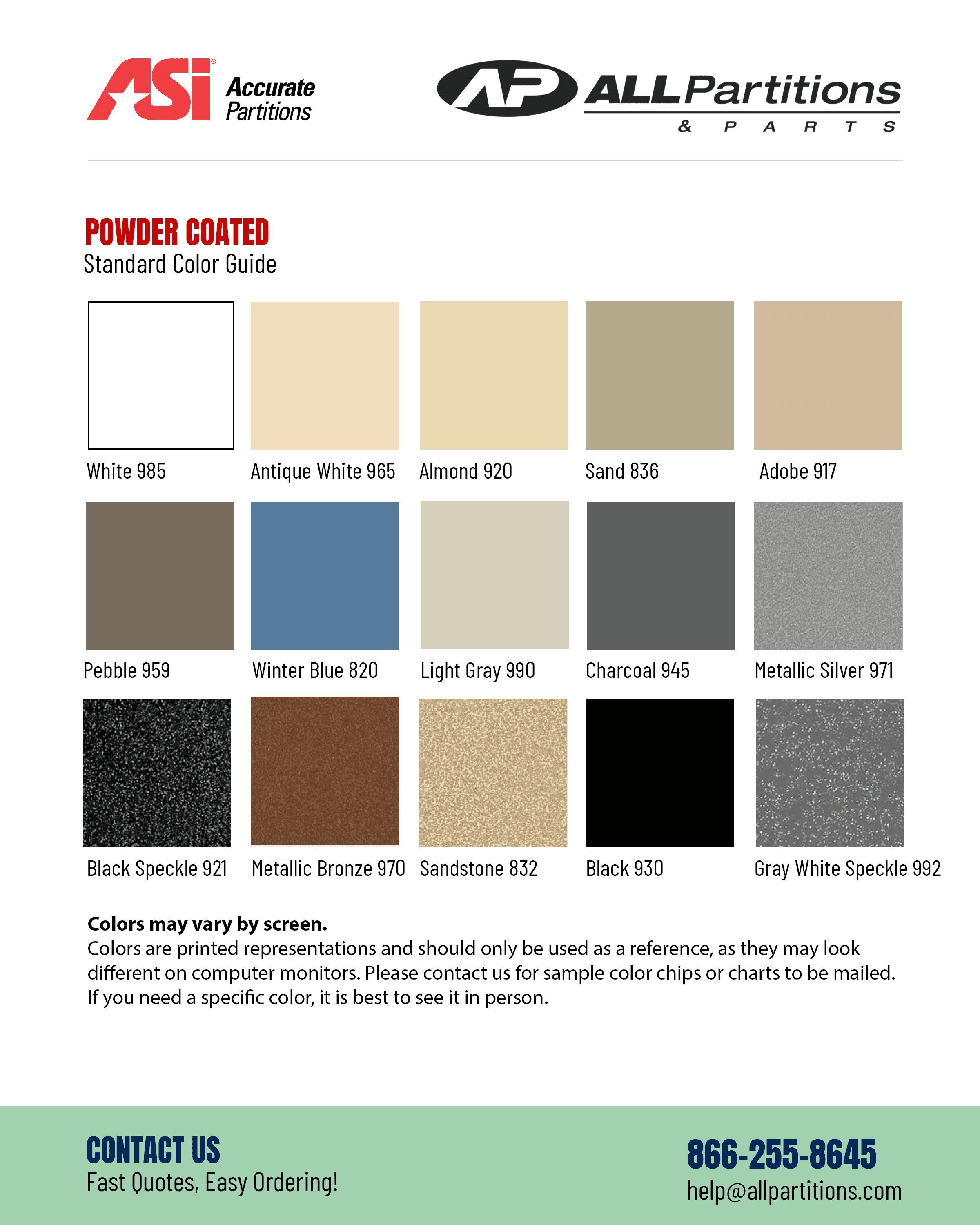 All Partitions and Parts offers 4 types of restroom toilet partition stalls. Each type of partition presents its own advantages and benefits. Here we've laid out some basic details for each as well as our own recommendations to help you determine which partition type will fit your project the best.