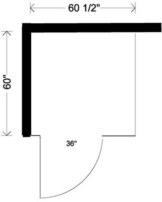usually 60" x 60" for new construction. Local requirements may very so it's best to check with your local government if unsure. A 34" door is usually required. All Partitions will send 36" doors with all stalls 42" or wider unless otherwise specified by customer or if specific circumstances in a particular job requires use of smaller door.