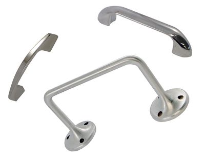 Chrome plated door pulls for Hadrian partitions with 5-7/8 inches between screws. Mount back to back through 1" thick doors.